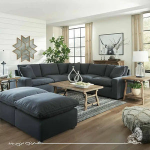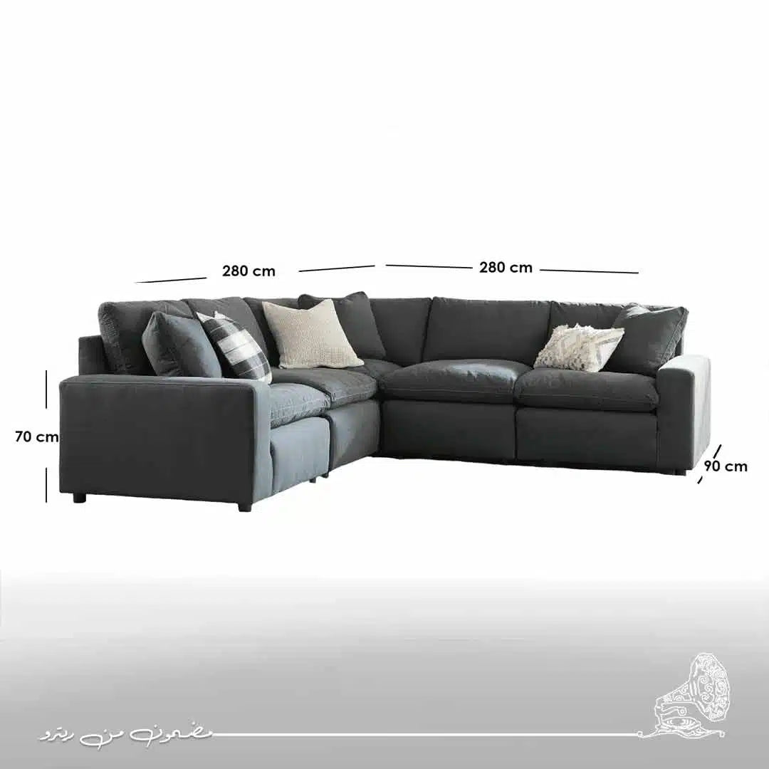 A stylish and distinctive 280 cm modern corner sofa that combines contemporary design with practical luxury, becoming an essential piece that adds a touch of elegance to the living room. It features a comfortable corner design that maximizes the use of space, making the corner sofa ideal for medium and large-sized rooms. The sofa comes with 3 cushions in the same color to enhance comfort and add visual harmony to the design, while the accompanying pouf adds a practical touch that can be used as a footrest or as an additional seat. Its elegant gray color blends with neutral and bright colors to make it easy to coordinate with the rest of the furniture.Materials: