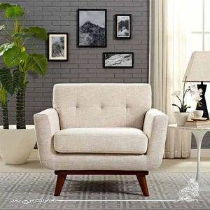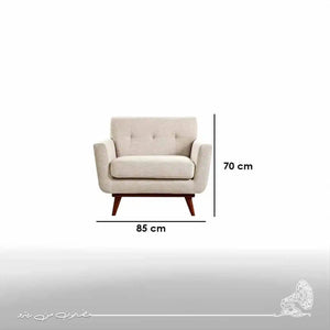 This 85cm wooden armchair boasts a modern design that combines comfort and elegance. Crafted from natural wood with a soft linen upholstery, the chair features armrests, a padded backrest, and a foam-padded seat and sides, providing a tranquil and comfortable seating experience whether you're relaxing after a long day, reading your favorite book, or receiving guests in style. Its contemporary design and serene off-white color allow it to blend easily with any décor, adding a touch of purity and freshness to any room.Materials: