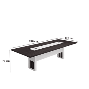 This stylish meeting table combines elegance and practicality in a modern design. Made from high-quality MDF imported from the European Union, it ensures durability and longevity. Its black and white color scheme creates a striking contrast, adding a touch of sophistication to any office space, making it ideal for modern meeting rooms or administrative offices that value aesthetics. The table features a spacious, flat surface, providing ample room for group meetings and allowing for the comfortable organization of files and laptops during discussions and presentations. Its simple yet balanced design adds a sense of luxury and professionalism to any work environment. Thanks to the quality and durability of the wood, this table guarantees long-lasting performance while maintaining its elegant appearance even with daily use.