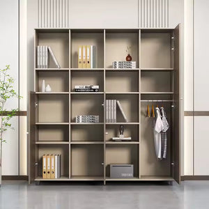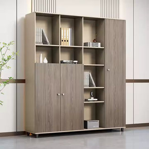 Modern Bookcase 160x200 cm: Add a touch of sophistication and distinction to your office with this modern bookcase featuring a contemporary design that combines practicality and elegance. Made from durable MDF wood for long-lasting strength and stability, its natural wood finish gives it a stylish look that complements various modern décor styles. The bookcase boasts a clever design that integrates open shelves, ideal for displaying books, files, or decorative items, with closed doors that provide practical storage space and keep your space organized. Its generous size makes it an ideal choice for offices, meeting rooms, and even homes seeking a stylish and practical storage and display solution. This design combines beauty and functionality to give you a piece of furniture that adds a distinctive, professional touch to your space.