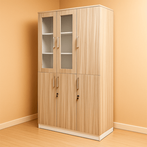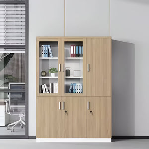Modern Bookcase 120 x 200 cm: Add a touch of elegance and organization to your office with this practical and stylish bookcase made from high-quality MDF. Its natural wood finish brings warmth and sophistication to your modern office décor. The bookcase features several spacious doors, providing ample room for storing files and office documents, or displaying books, decorative items, and small decorative objects in a coordinated and attractive manner. Its smart vertical design helps you utilize space efficiently, making it an ideal choice for offices or workrooms seeking practical organization without sacrificing style.