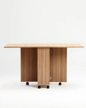 This modern folding table offers the flexibility you need in your daily life, making it the perfect solution for small spaces or areas where you need to make the most of every corner. Thanks to its practical design, it folds down to create a stylish, compact table that saves space, then unfolds easily into a spacious dining table, ideal for meals, a comfortable workspace, or even for use during holidays and large family gatherings. Made from MDF wood for quality and durability, it boasts a stylish, modern look that will last. The calming beige color adds a warm yet elegant touch, making it suitable for various modern and classic décor styles.