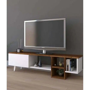 This modern TV stand combines elegance and functionality to give your living room a sophisticated and harmonious look. Its sleek, contemporary design and elegant white and brown color scheme add a touch of warmth and luxury to your home décor, while also helping you organize your space with ease. The stand features a spacious surface for your TV and favorite decorative items, with ample storage space underneath for electronics, books, and accessories, creating a more organized and stylish look. Made from high-quality MDF imported from the European Union, ensuring long-lasting durability and stability, and finished with a water- and scratch-resistant HPL coating to maintain its shine and beauty for years to come. Choosing this stand is choosing practical beauty that blends modern design with meticulous details, showcasing your contemporary taste in every corner of your home.